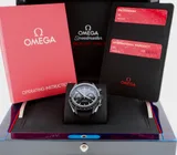 This unworn wonderful Omega Speedmaster Chronograph Dark Site of the Moon model 31192445101003 with 44,25 mm ceramic case, with titanium / ceramic folding clasp ! (like model 31192445101004), textiele / leather bracelet comes with the original box set, booklet, and warranty cards from authourised dealer in Germany 12-2023 (International Omega warranty until 12-2028)
