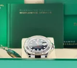 This unworn straight from watch collector full set Rolex Yacht-Master (model 126622) with 40mm case, Oyster bracelet, platinum bezel, beautiful blue dial is still in some factory seals and comes with original triple box set, booklets, hang-tag with bezel protector and warranty card from authorised dealer in the Netherlands 09-2020 and 12 months warranty.