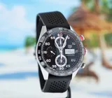 This full set Tag Heuer Carrera Calibre 16 Chronograph Day/Date (model CNN2A1AA.FT6228 with 44mm stainless steel case, automatic movement, black dial and ceramic black bezel, rubber bracelet with folding clasp, is in a Brilliant condition (no signs of ware) and comes with original boxes, booklet, hang-tag, warranty card from (05-2023) from authorised dealer in the Netherlands and 12 months warranty.